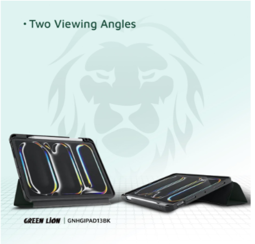 وصف قم بحماية جهاز iPad Pro/Air 13" الخاص بك مع حافظة Green Lion Hogo Premium. تتميز هذه الحافظة بحامل قلم رصاص مدمج وغطاء ذكي مغناطيسي، وتوفر وظيفة النوم/التنشيط التلقائي للمساعدة في الحفاظ على عمر البطارية. يوفر الحامل المستقر ثلاثي الطي وضع متعدد الاستخدامات في اتجاهين للعرض والكتابة بشكل مريح. تم تصميم حافظة Hogo Premium Case لتكون نحيفة وخفيفة الوزن، وتوفر ملاءمة آمنة دون إضافة حجم غير ضروري لجهازك ميزة التنبيه التلقائي يسمح بالوصول السريع والسهل إلى جهازك عندما تحتاج إليه. يضمن حامل القلم الرصاص المدمج والمريح بقاء قلم Apple الخاص بك آمنًا وفي متناول اليد في جميع الأوقات، حيث يجمع بين الحماية والوظيفة والأناقة، يُعد Green Lion Hogo Premium Case ممتازًا اختيار لجهاز iPad Pro/Air مقاس 13 بوصة. غطاء ذكي مغناطيسي للنوم/الاستيقاظ التلقائي عرض وكتابة الموضع في اتجاهين حامل قلم رصاص مدمج حامل ثلاثي الطي ثابت نحيف وخفيف الوزن مقاس نحيف للغاية الاستيقاظ التلقائي